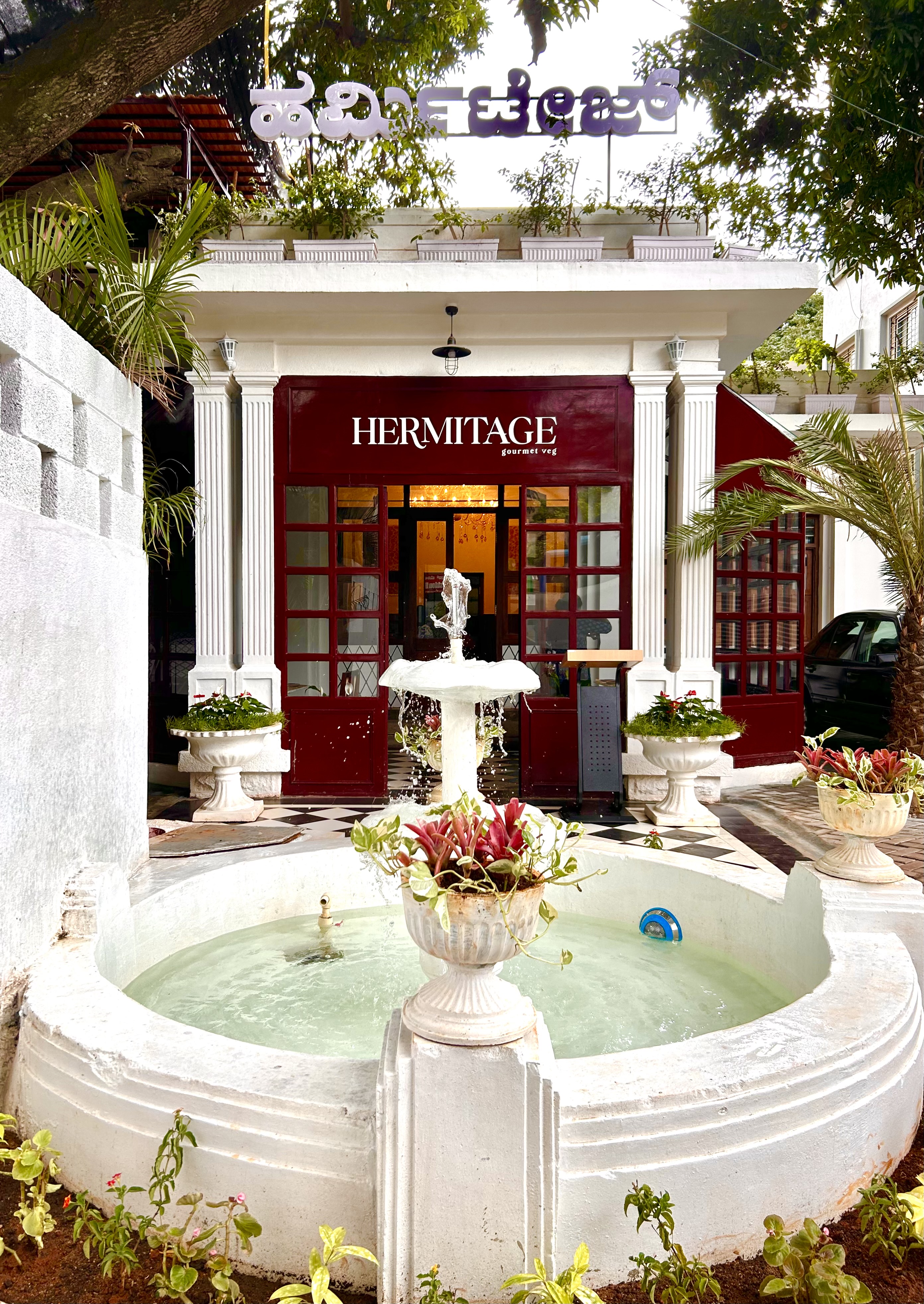 Located in the centuries-old locality of Malleswaram in Bangalore, Hermitage India is a fusion restaurant designed to provide a dining experience with a quaint charm.